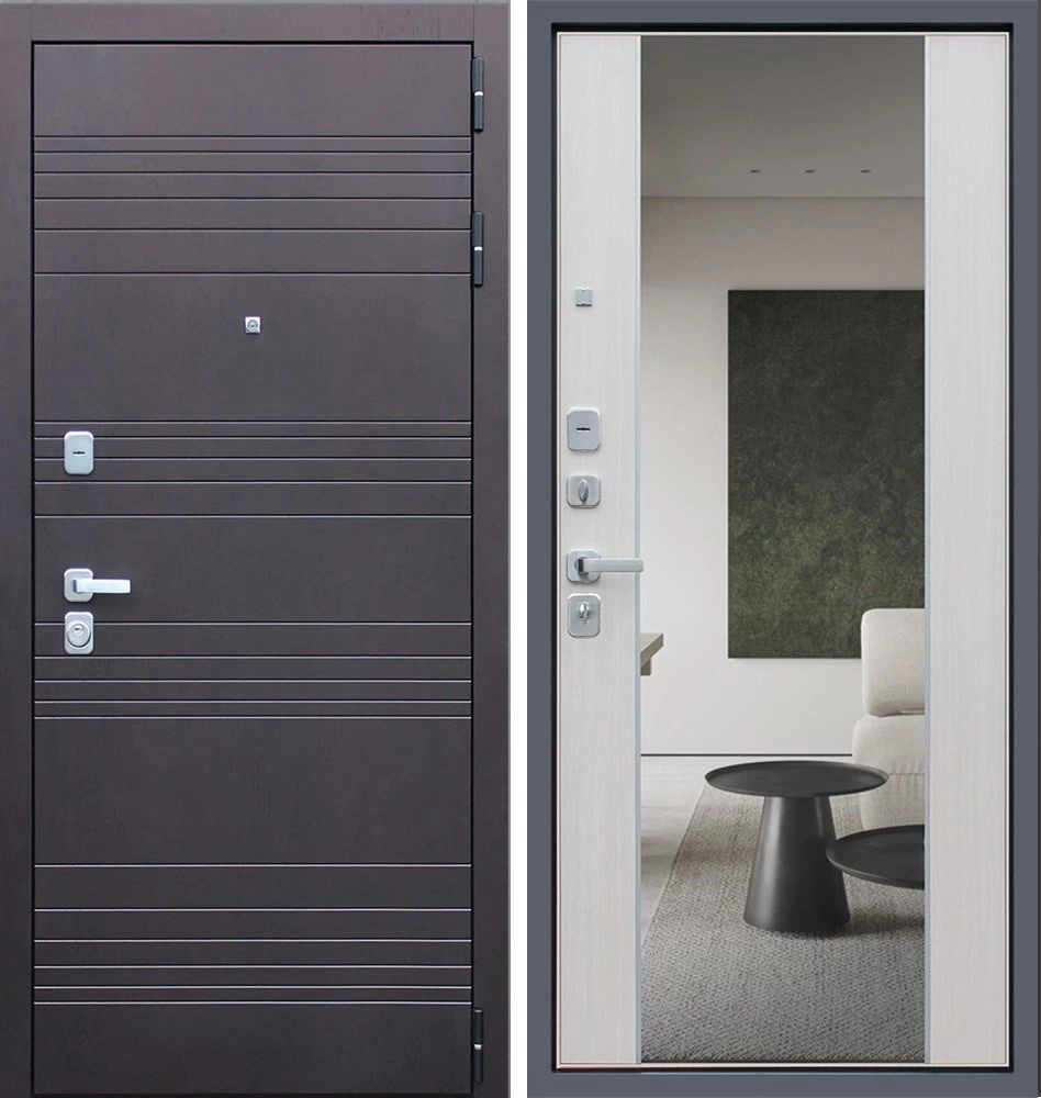 Надежная входная Дверь Дуэт с зеркалом премиум класса по цене 46 829 руб. Большая толщина стали защитит от проникновения в ваш дом, квартиру или коттедж. Используется очень качественная фурнитура: замки, цилиндры, ручки, защелки. Покрытие и отделка двери изготовлено под внимательным контролем производителя. Дверь имеет долгий срок службы и гарантию.