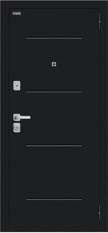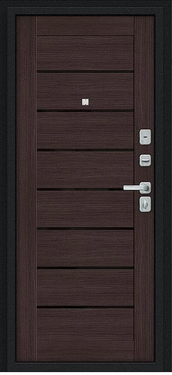 Надежная входная Дверь Браво Техно/BChrome Букле черное/Wenge Melinga премиум класса по цене 34 579 руб. Большая толщина стали защитит от проникновения в ваш дом, квартиру или коттедж. Используется очень качественная фурнитура: замки, цилиндры, ручки, защелки. Покрытие и отделка двери изготовлено под внимательным контролем производителя. Дверь имеет долгий срок службы и гарантию.