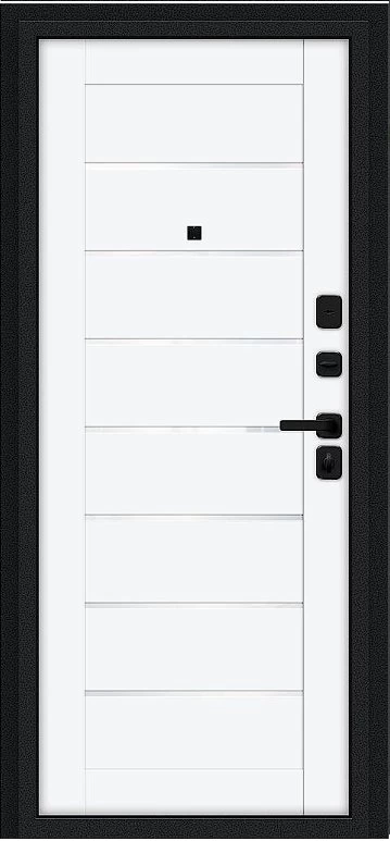 Надежная входная Дверь Браво Техно/SBlack Букле черное/White Silk премиум класса по цене 34 779 руб. Большая толщина стали защитит от проникновения в ваш дом, квартиру или коттедж. Используется очень качественная фурнитура: замки, цилиндры, ручки, защелки. Покрытие и отделка двери изготовлено под внимательным контролем производителя. Дверь имеет долгий срок службы и гарантию.